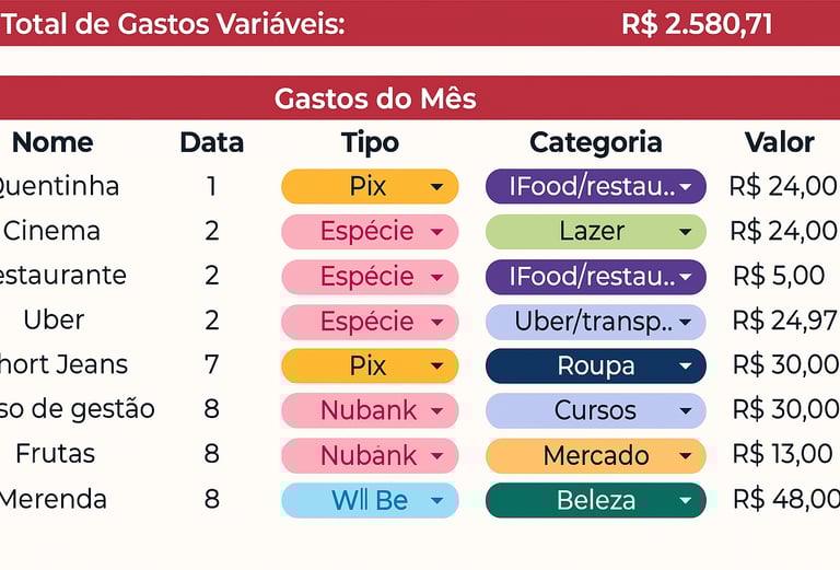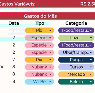 ☑️ Rastrear cada gasto fixo e variável, visualizando claramente para onde o dinheiro está indo.
